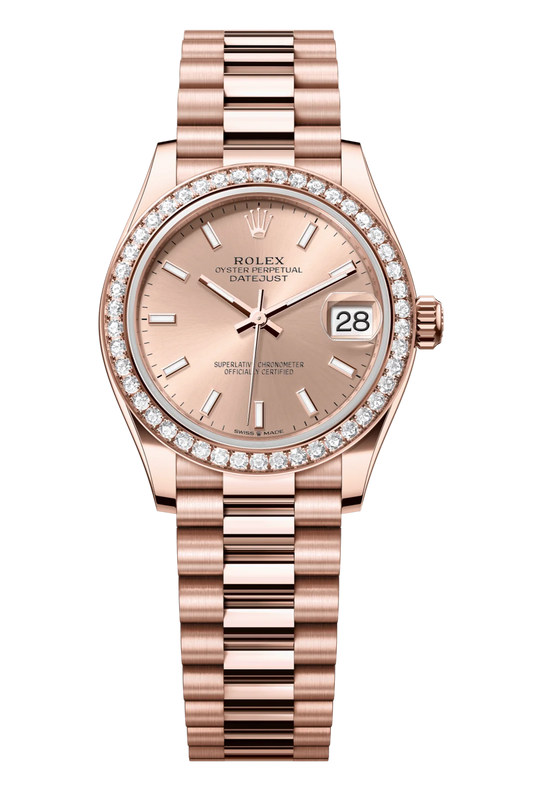 Oyster Perpetual Datejust 31 in 18 ct Everose gold features a rosé-colour dial and a President bracelet 278285RBR-Rose Gold 1Vendor: RolexGem-setters, like sculptors, finely carve the precious metal to hand-shape the seat in which each gemstone will be perfectly lodged. With the art and craft of a jeweller, the stone is placed and meticulously aligned with the others, then firmly secured in its gold...