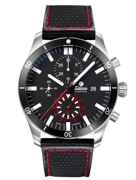 Chronograph Racing Red 6420-09Vendor: TutimaThe new Saxon One Racing Red: the spectacular highlight of the Tutima Glashütte collection shines with a red dial.Movement Details : Automatic movement chronograph. Rotor antique grey with gold seal. 25 jewels. Polished screws. Power reserve when fully wound 48 hours. Functions: Date display....