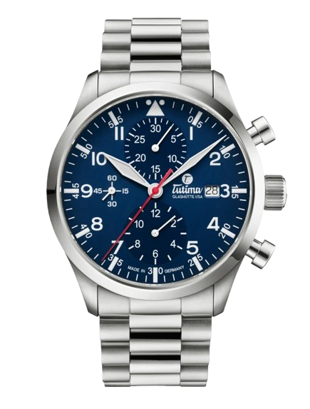Classic Chronograph 6408-01Vendor: TutimaThe Pilot's Watches Classics from Glashütte, revised in every detail and modernized.Movement Details : Automatic movement chronograph. Rotor rhodanized with gold seal. 25 jewels. Polished screws. Power reserve when fully wound 48 hours. Functions: Date display. Hour, minute, small second, Chronograph 60-second counter, 30-minute...
