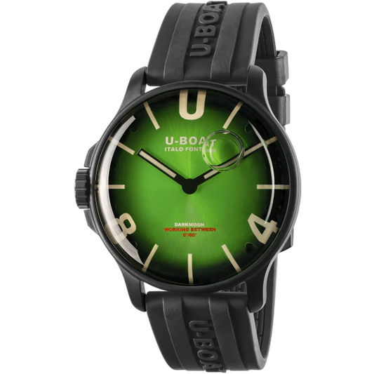 DARKMOON GREEN PVD SOLEIL 9503/BVendor: U-BoatYour time in color directly on your wrist. 40mm stainless steel PVD case, oil immersion concept and soleil green dial that fades into a full black.