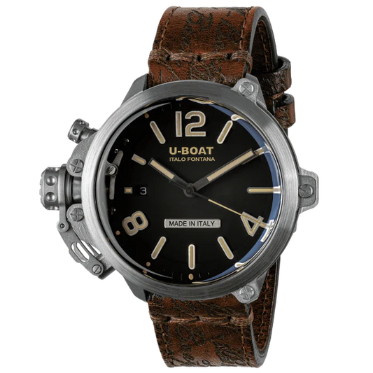 CLASSICO 45 TITANIUM TUNGSTEN BLACK RIGHT HOOK 3005Vendor: U-BoatEvery shade of the dial turns the Classic into a masterpiece of design and craftsmanship. A watch crafted from titanium and tungsten, exceptionally featuring a crown on the right, designed for lefthanders and for those who seek emotion and character in every second preferring...