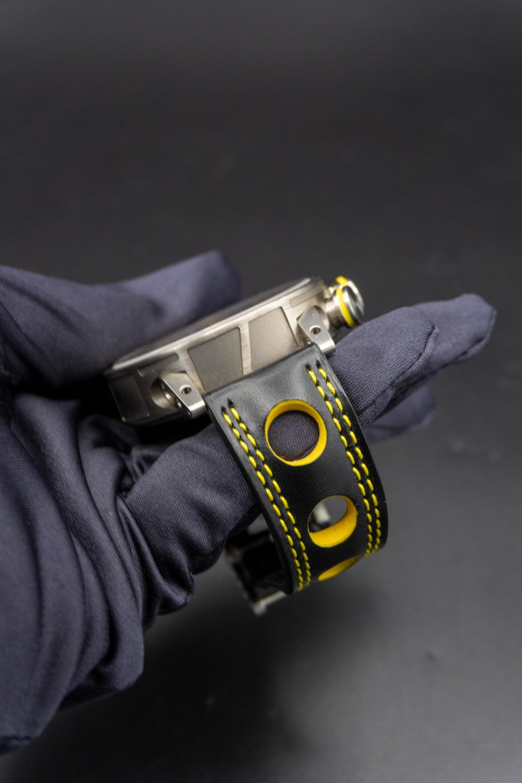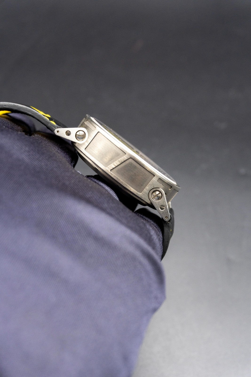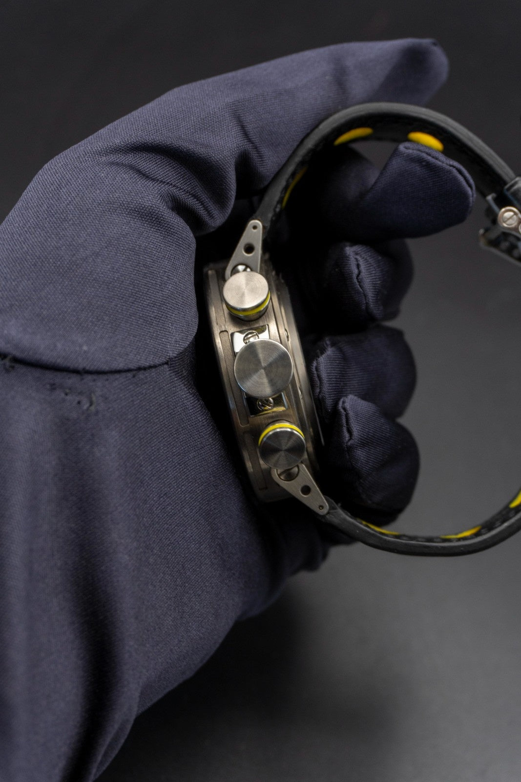 Model: Y1646Case: Grey titanium Diametre: 46mm Lugs and Remontoire: Finest 18/8 stainless steel Dial: Silver Hands: Yellow super light Strap: Black rubber Crystal: Double face sapphire crystal Screws: Specific screws in finest stainless steel Water Resistance: 100m Warranty: 3 years Movement: Automatic chronograph 7753 Calibre: Round calibre, automatic winding, 28,800 beats per hour Jewels: 27 Power Reserve: 46 hours Thickness: 7.9mm Functions: 60s chronograph function, 30 minute and 12 hour countdown, 10-hour date corrector Pushers: 2 o’clock: chronograph stop/start, 4 o’clock: chronograph reset