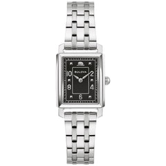This enduring design from Bulova’s Frank Sinatra collection is inspired by classic Bulova model from the legendary crooner’s heyday. The watch features a 21mm silver-tone stainless steel case with a curved sapphire crystal with anti-reflective coating, a case back engraved with the Sinatra logo and “The Very Thought of You,” and a matching 7-row bracelet with a push-button deployant clasp. The radiant black dial is appointed with a date display and silver-tone hands and applied markers, including Sinatra’s signature fedora at 12 o’clock. As classic as Sinatra himself, this Bulova ladies’ watch offered in a custom Frank Sinatra box is a timeless addition with style that will last a lifetime.