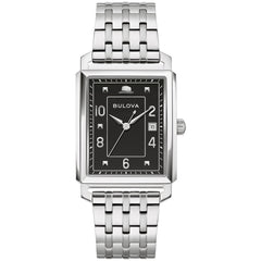 This enduring design from Bulova’s Frank Sinatra collection is inspired by classic Bulova model from the legendary crooner’s heyday. The watch features a 30mm silver-tone stainless steel case with a curved sapphire crystal with anti-reflective coating, a case back engraved with the Sinatra logo and “The Very Thought of You,” and a matching 7-row bracelet with a push-button deployant clasp. The radiant black dial is appointed with a date display and silver-tone hands and applied markers, including Sinatra’s signature fedora at 12 o’clock. As classic as Sinatra himself, this Bulova men’s watch offered in a custom Frank Sinatra box is a timeless addition with style that will last a lifetime.