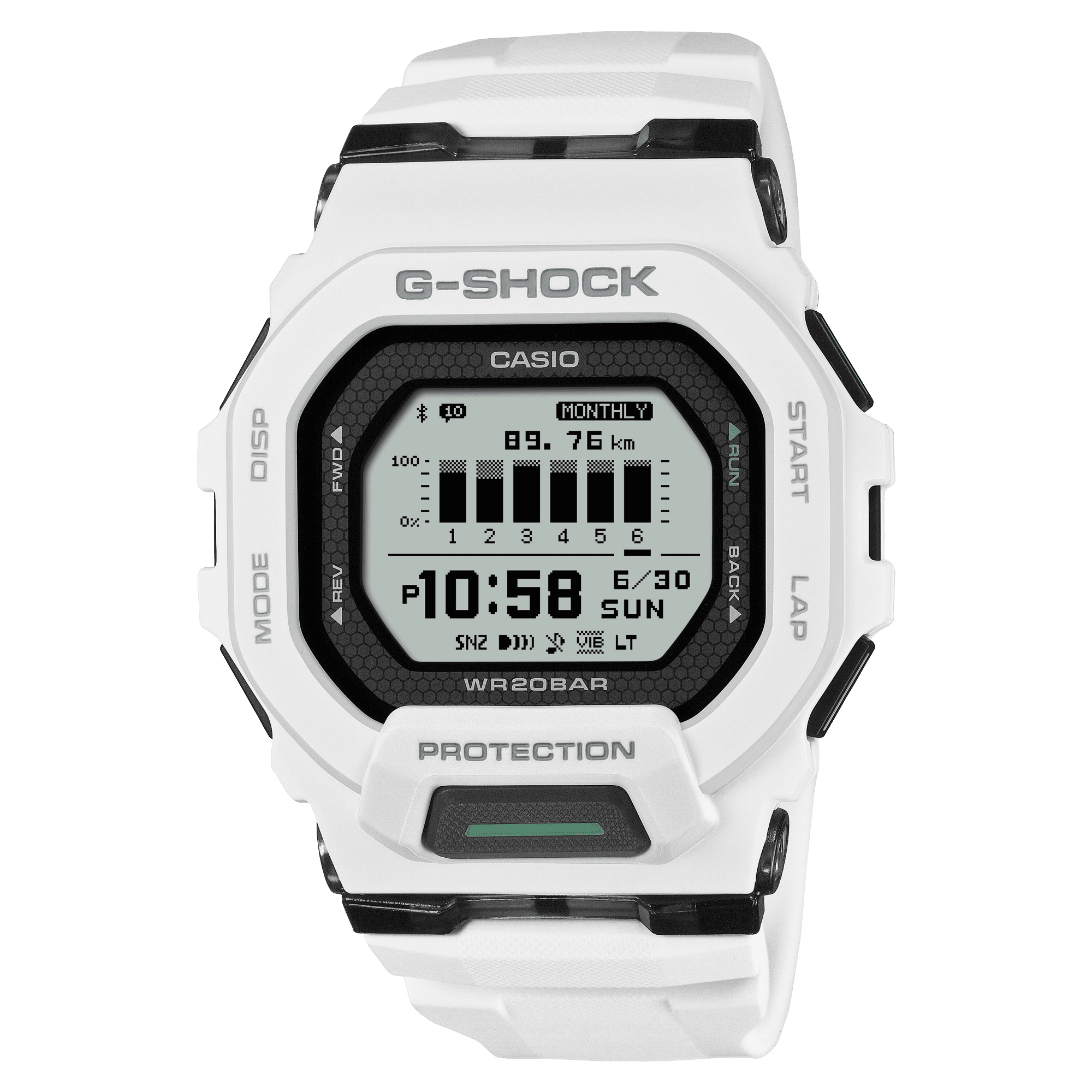 Take control of your workouts and make everyday life easier with an updated design and super readable display from the tough, sports-oriented MOVE line of G-SHOCK watches. This timepiece delivers G-SHOCK toughness with the features you need for the ultimate workout, like distance tracking, smartphone connectivity, as well as enhanced visibility and refined design to deliver outstanding usability. The positive mode Memory-in-Pixel (MIP) display provides a clearer read even in bright sunlight, making it easy to check data during workouts and when you’re on the go.