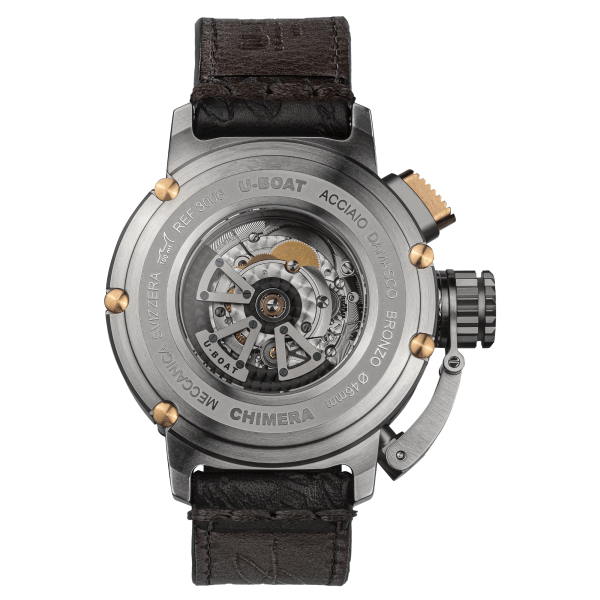 A limited edition timepiece of only 300 pieces, with a distinctive design that never compromises: the Chimera. Bronze merges with Damascus steel in a prestigious model that enhances the lines of a timeless design.