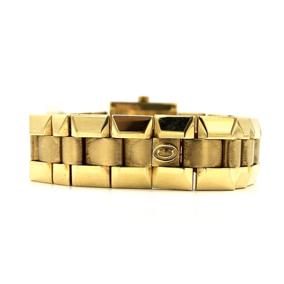 Concord La Scala Reference 51.25.572 – an exquisite Swiss-made timepiece crafted in 18k yellow gold for the discerning woman. This 20mm square case features 12 full-cut round diamonds (D–F colorless, VS1–VS2 clarity) adorning the lugs, complemented by eight diamonds and numerals on the sunburst white dial. The scratch-resistant sapphire crystal protects the analog 12-hour display, while the matching 18k gold bracelet ensures refined elegance. Powered by reliable quartz movement, this sophisticated ladies' watch combines technical precision with timeless luxury.