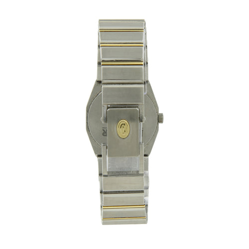 This Ladies Concord Mariner SG is in Good Cosmetic condition. This beautiful watch has a champagne diamond dial. The case is stainless steel with a yellow gold Diamond bezel. The bracelet is stainless steel with gold accents.