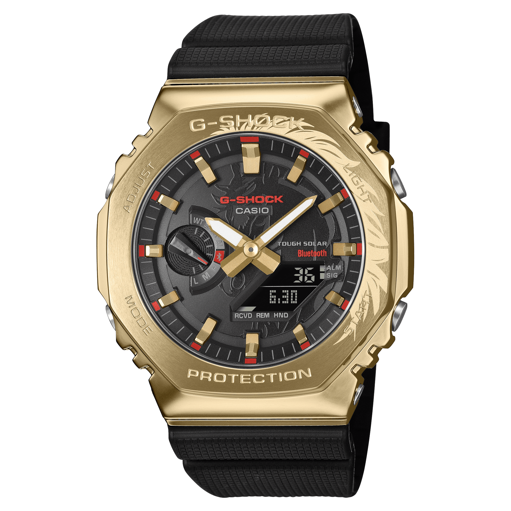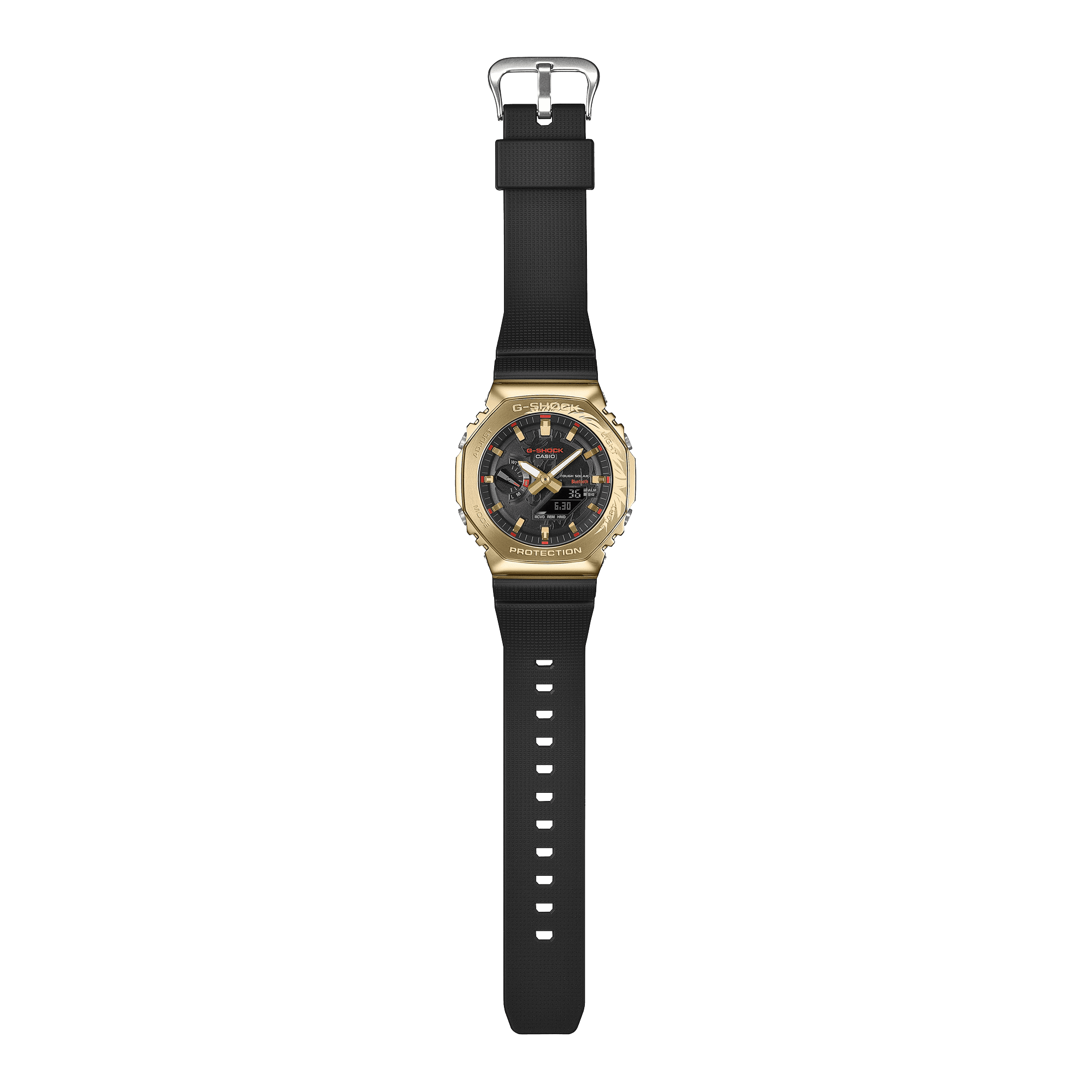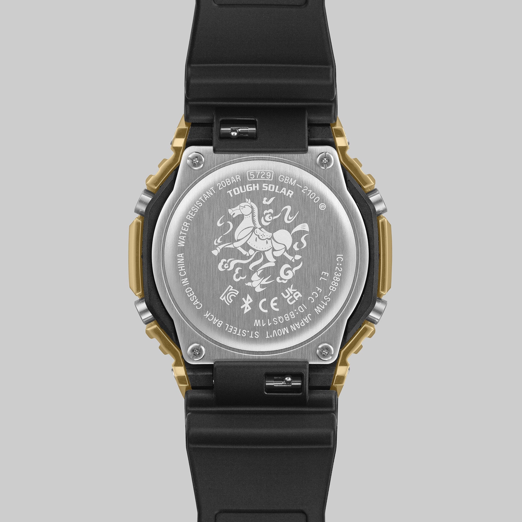 Model: GBM2100CX-9A Case Diameter (Mm): 49.3 × 44.4 × 11.9 mm Weight: 72 g Case Material: Resin / Bio-based Resin / Stainless Steel Bezel Material: Resin / Bio-based Resin / Stainless Steel Strap Material: Bio-based Resin Glass Material: Mineral Glass Surface Treatment: Gold Ion Plated Bezel Construction: Shock Resistant Water Resistance: 200-meter Water Resistance Time Adjustment: Bluetooth Smartphone Link Power Supply And Battery Life: Tough Solar (Solar Powered) Compatible Band Size: 145 to 215 mm Other: Neobrite