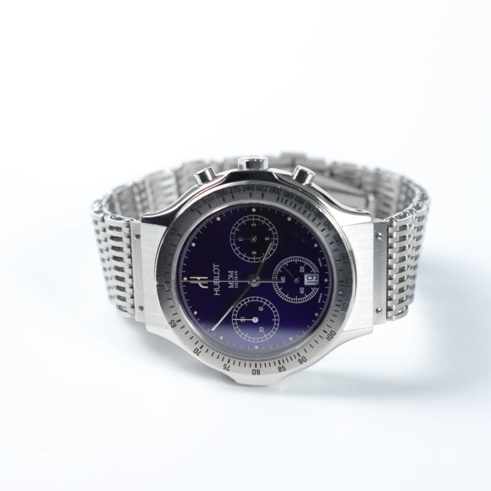 The Hublot MDM represents a refined evolution of the iconic Big Bang collection, engineered for the discerning collector. This timepiece features a robust black case with integrated rubber elements, delivering the brand's signature fusion of traditional watchmaking and contemporary design. The MDM sizing strikes an ideal balance between presence and wearability, making it equally suited for boardroom discussions or weekend pursuits. Precision movement and water resistance ensure reliable performance across diverse conditions. A statement piece that commands attention while maintaining understated sophistication.