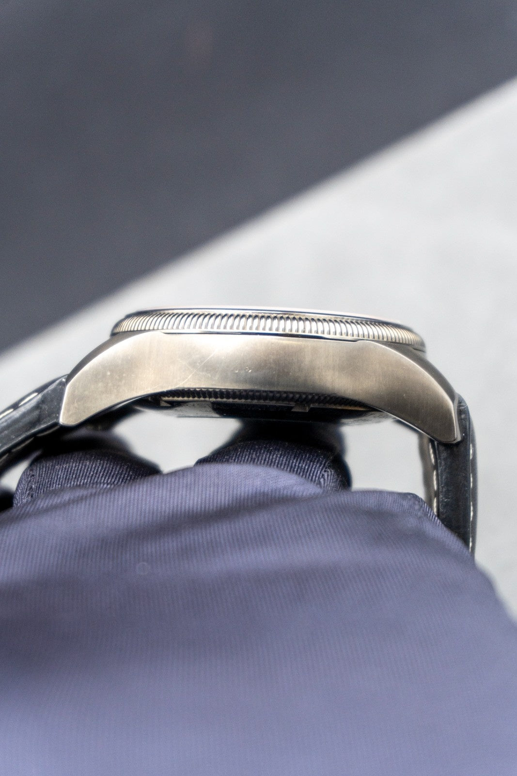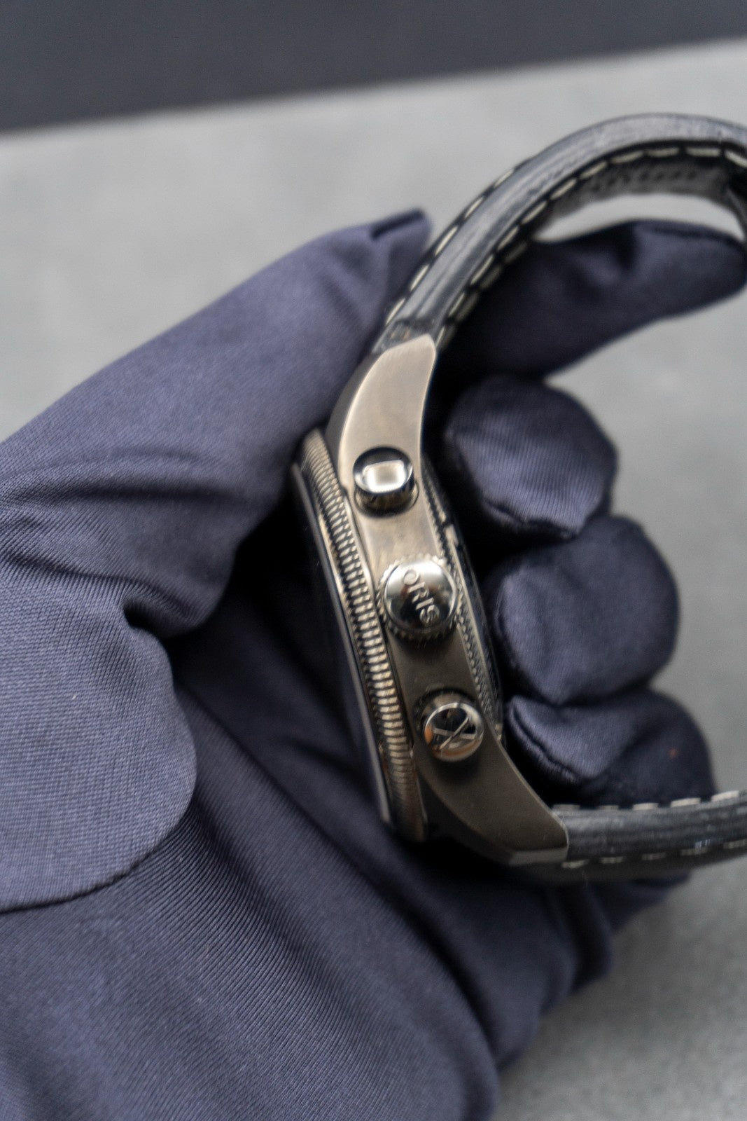 Multi-piece stainless steel case, grey PVD plated. Sapphire, domed on both sides, double-sided anti-reflective coating. Stainless steel, grey PVD plated, screwed, see-through mineral glass, special engravings.