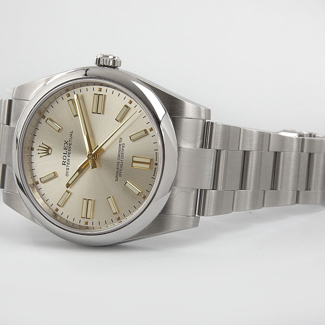 Un-Worn Rolex Oyster Perpetual 41mm Stainless Steel 41mm Stainless Steel Case & Stainless Steel Oyster Bracelet, This Classic Rolex 124300 Is a Stylish and Durable Timepiece. Featuring a Fixed Smooth Stainless Steel Bezel, Silver Dial & Gold Baton Hour Markers, Automatic Movement, The Rolex 124300 Is Not Only Sleek In Style But Also Has a Robust & Functional Design. The Sleek & Sophisticated Design Of The Rolex Oyster Perpetual Allows It To Effortlessly Transition Between Formal and Casual Occasions.