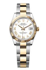 The Rolex fluted bezel is a mark of distinction. Originally, the fluting of the Oyster bezel had a functional purpose: it served to screw the bezel onto the case helping to ensure the waterproofness of the watch. It was therefore identical to the fluting on the case back, which was also screwed onto the case for waterproofness, using specific Rolex tools. Over time, the fluting became an aesthetic element, a genuine Rolex signature feature. Today the fluted bezel is a mark of distinction, in gold on this Datejust 31. Lacquer combines almost limitless freedom of colour with intensity and a smooth finish. The lacquering technique consists of successively depositing six thin layers of lacquer on a brass base plate. A colourless varnish is then applied to give the colour or shade all of its depth and shine. Once the varnish is dry, the surface of the dial is polished to magnify the colour; the dial is then ready to be pad printed and receive its appliques.