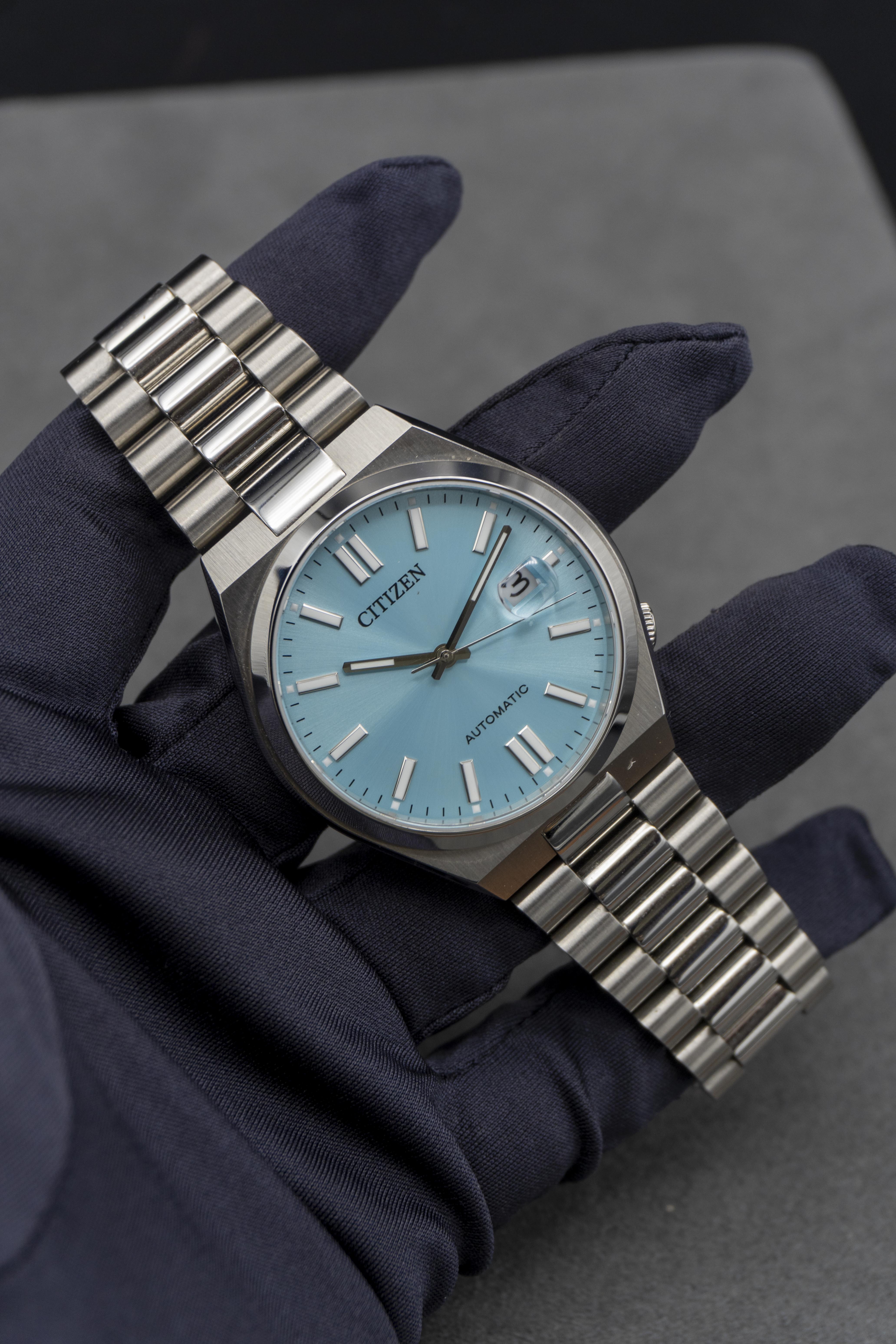 The TSUYOSA Automatic, from the NJ015 series, brings ultramodern sports styling right to your wrist. Executed in a versatile 40mm footprint, the sophisticated design of the watch makes a strong impression via a silver-tone stainless steel case and a seamlessly integrated, matching bracelet. Underneath an anti-reflective sapphire crystal, the sporty timepiece makes use of a sunray sky blue dial, with a 3 o’clock date window and contrasting silver-tone details adding to its classic aesthetic. Powered by an automatic movement and offering up to 50 meters of water resistance, the refined timepiece is a daily wearing choice ready for work, play, and everything in between. Caliber 8210.