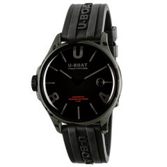 CASE: made of AISI 316L steel with camouflage treatment completely filled with a special oil that highlights the dial creating the illusion of glass absence with a deeper black effect and enhanced legibility. Visible air bubble on the dial to compensate for temperature variations. Distinctive crown protector on the left. 40 mm diameter.