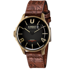 CASE: 40 mm diameter in AISI 316L stainless steel with subsequent PVD Bronze treatment completely filled with a special oil that emphasizes the dial creating the illusion of the absence of glass and an optical effect of an higher legibility. Visible air bubble on the dial to compensate the temperature variations. Distinguishing crown on left side.