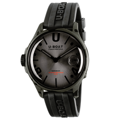 CASE: made of AISI 316L steel with camouflage treatment completely filled with a special oil that enhances the dial creating the illusion of the absence of glass with a deeper colour effect and improved readability. Visible air bubble on the dial to compensate for temperature variations. Protective crown guard on the left. 44.8 mm diameter.