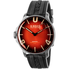 red metal with brushed soleil finishing hands and indexes treated with beige superluminova.