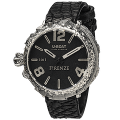 A masterpiece of jewelry art in silver version a special edition inspired by Florence and its historic monuments: Ponte Vecchio the Cathedral of Santa Maria del Fiore. Instead of the crown positioned on the left side of the case a 1.30 to 2.00 carat black rose-cut diamond.
