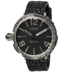 Rome St. Peter’s Basilica the Colosseum faithfully engraved on the case of a special edition watch in silver. Instead of the crown positioned on the left side of the case a 1.30 to 2.00 carat black rose-cut diamond.