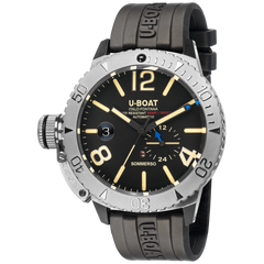 Sellita SW 200 swiss automatic mechanical personalized to U-BOAT specifications. Frequency: 28 800 vibrations per hour. Power reserve: 41 hours. 26 jewels. Skeletonized rotor.